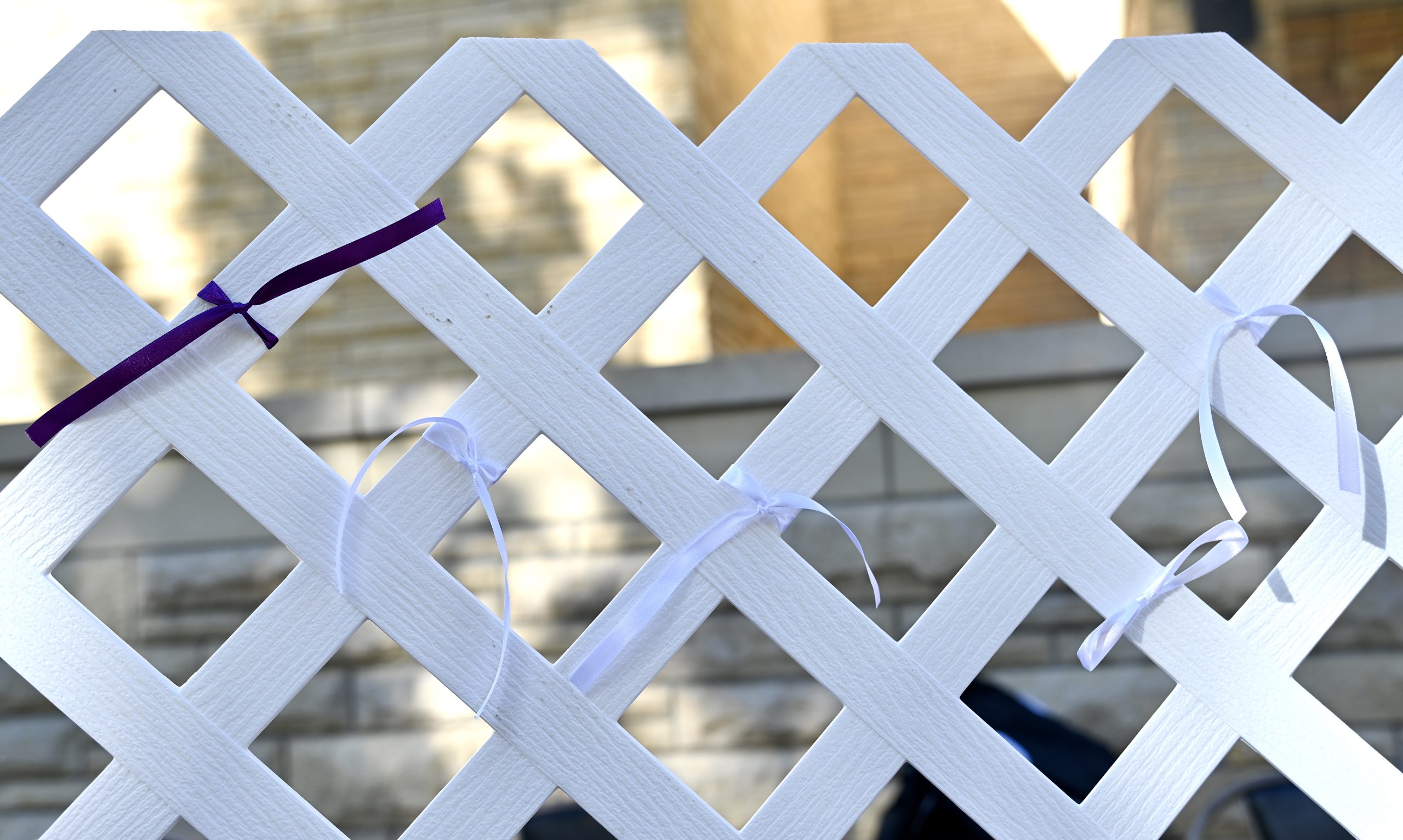 Fort Hays State University’s Social Work Club placed its Fence of Voices in the Quad on Wednesday to encourage students to tie ribbons in honor of domestic violence victims for Domestic Violence Awareness Month. The club also featured resources provided by Jana’s Campaign and Options Domestic & Sexual Violence Services for students to find help for themselves or others.