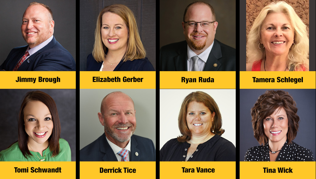 Announced at the first-ever virtual board meeting June 12 were Jimmy Brough, Topeka; Elizabeth Gerber, Scott City; Dr. Ryan Ruda, Garden City; Dr. Tamera Schlegel, Centennial, Colo.; Tomi Schwandt, Wichita; Derrick Tice, St. Francis; Tara Vance, Norton; and Tina Wick, Wamego. Each is beginning a two-year term.