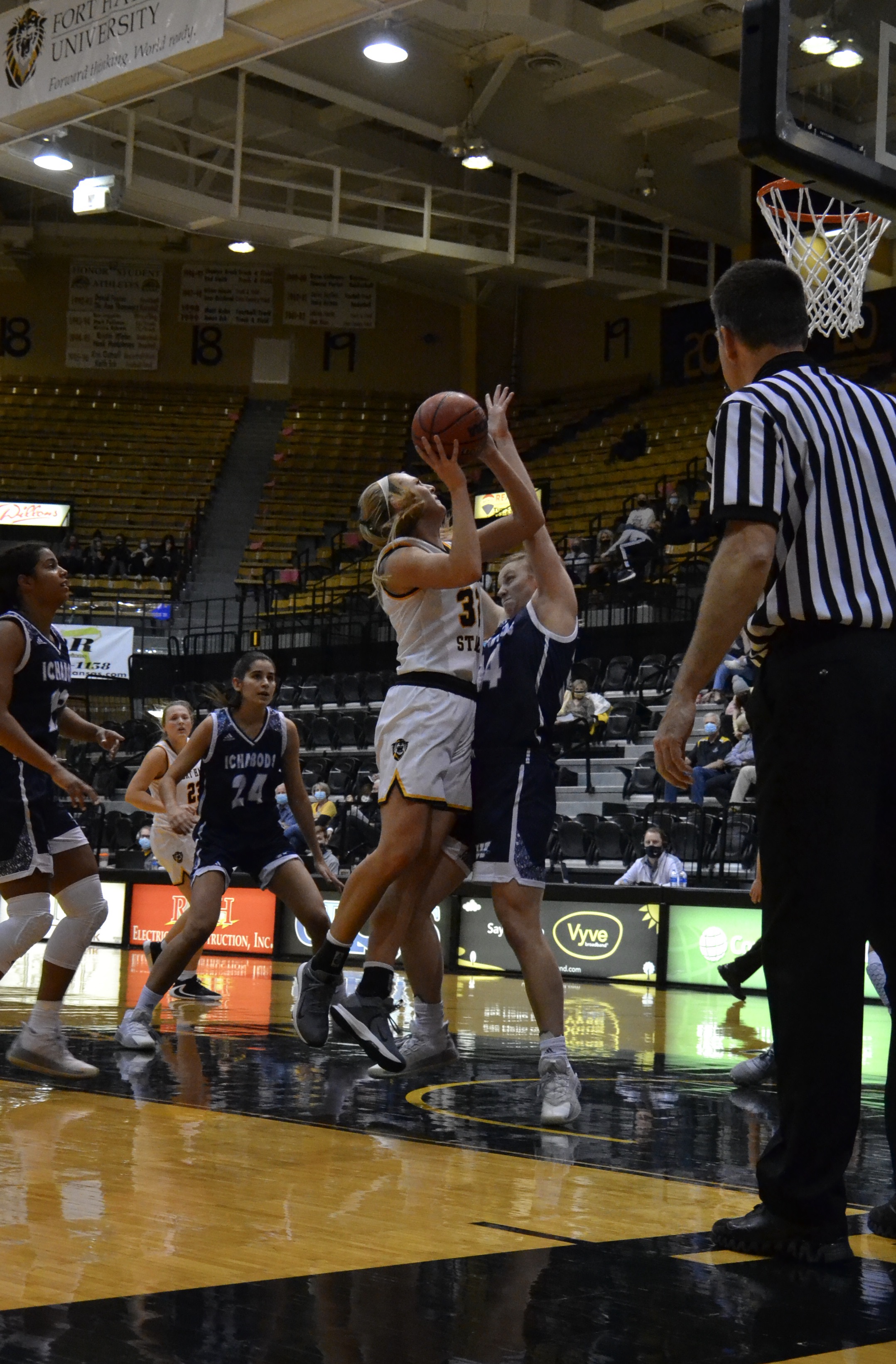 After the first quarter the Tigers led 20-19. Hobbs claimed four of those points, while Randall added nine points. Newcomer Hollenback had five points in the first quarter as well. After the second quarter the Ichabods led 38-35. Randall ended the half with 14 points, two blocks, one assist, and one rebound.