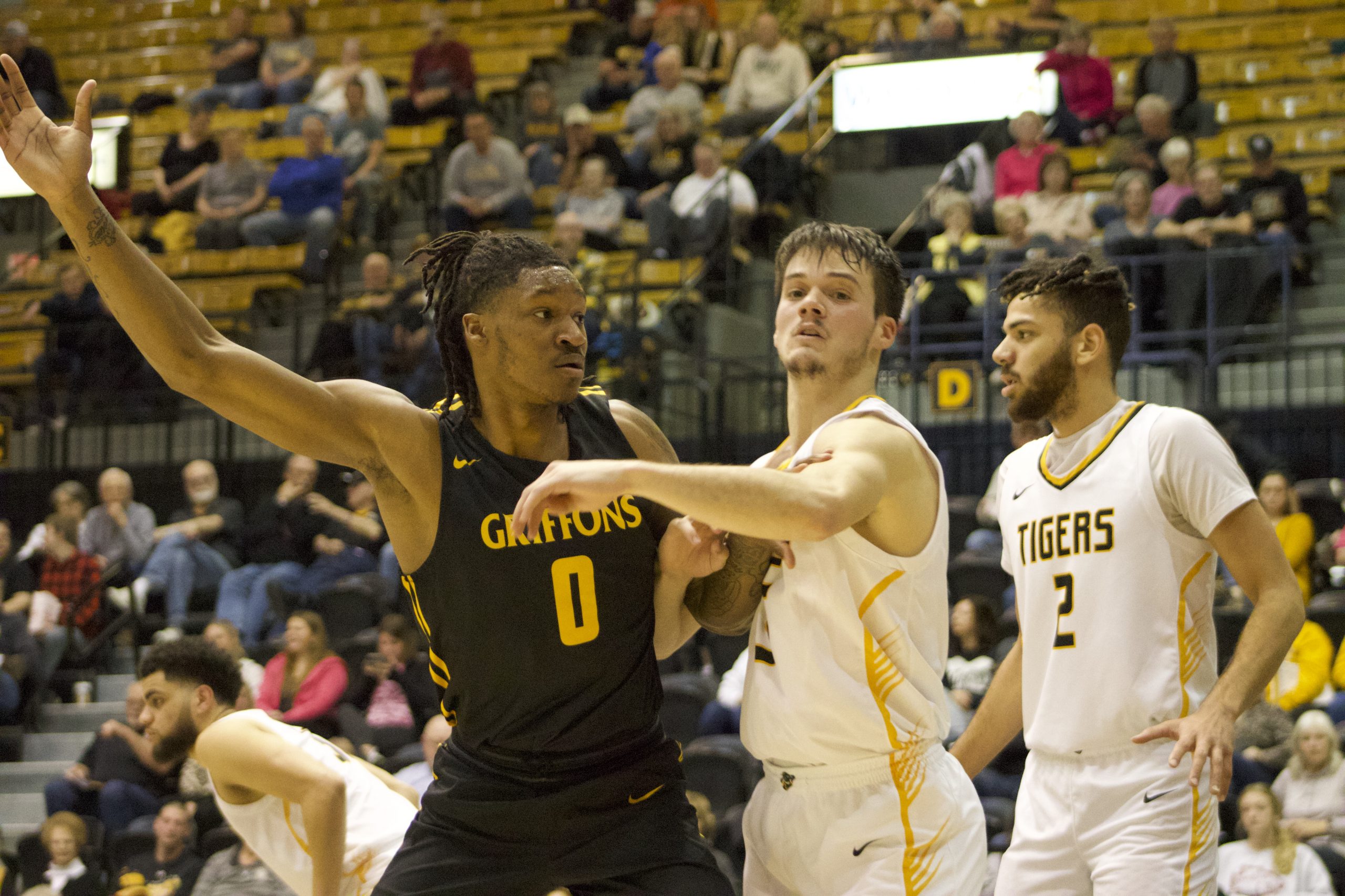 Gabe Pieschl drives at the top of the key. The plan going into tonight was to defend, rebound, hold them to one shot, move on offense, and knock down the open shots. “We stuck to the plan for the most part,” said Pieschl. “Some mistakes were made, there were too many turnovers but we played hard and had a chance at the end but it wasn’t the outcome we wanted.”