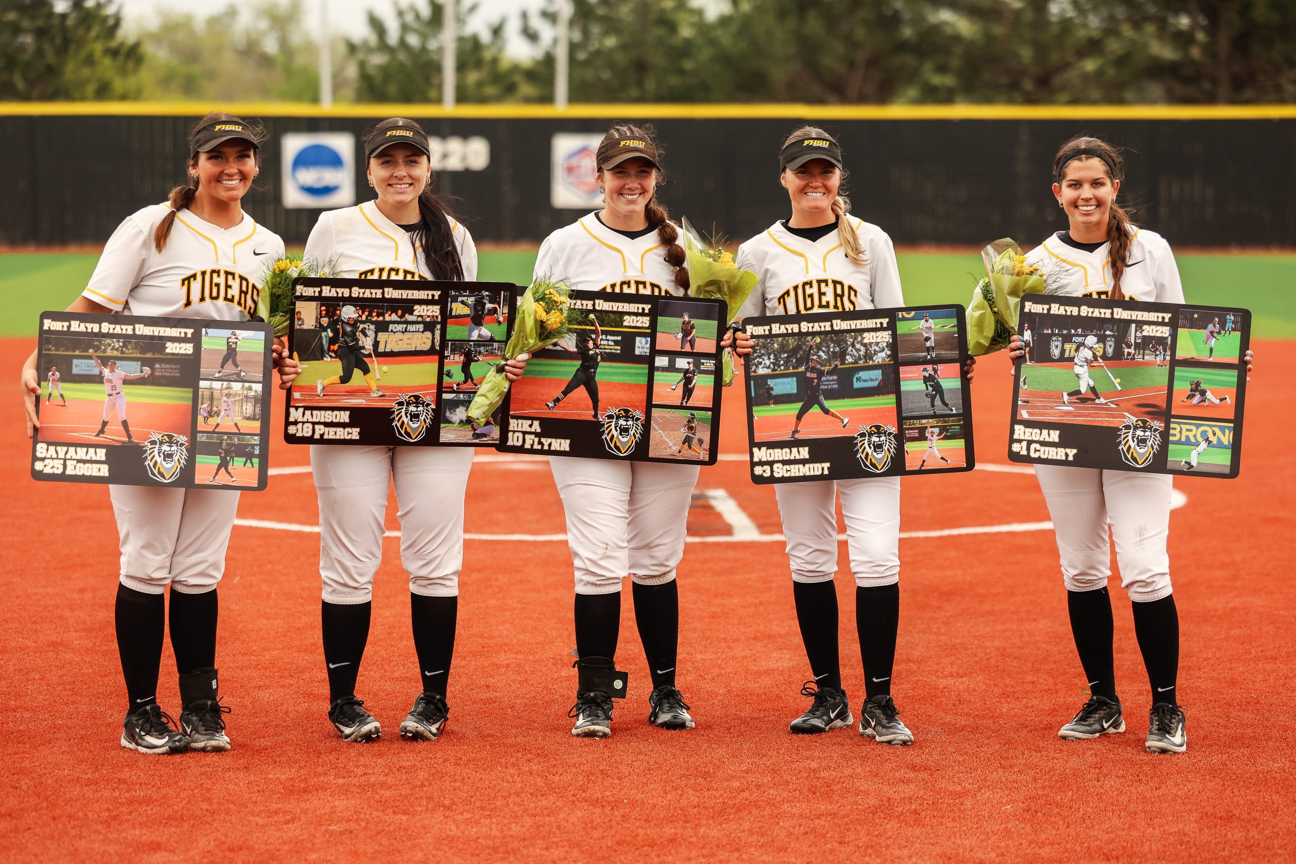 Five Tigers stepped on the field at Fleharty Family Field for their last regular season on Saturday as FHSU softball battled for a postseason spot on the last day of the MIAA regular season. Regan Curry, Morgan Schmidt, Erika Flynn, Madison Pierce, and Savanah Egger were all recognized for their time at Fort Hays State after FHSU’s 6-3 victory over UNK.