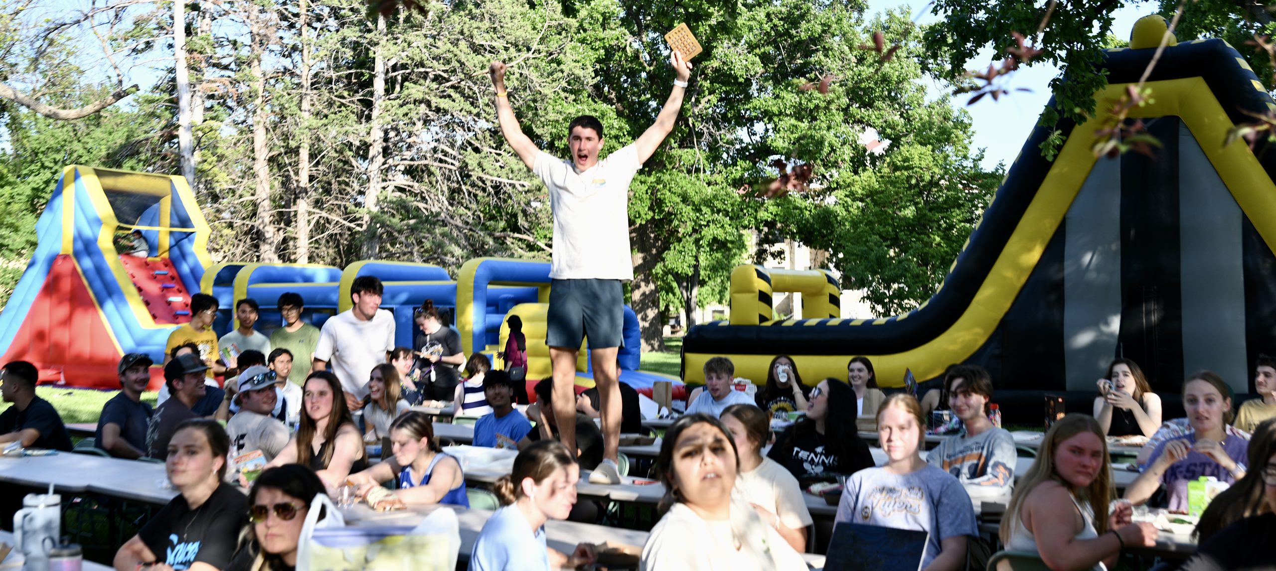 Fort Hays State University’s office of Student Engagement hosted Jammin’ into Summer to offer students an evening of games and activities before completing the Spring semester for Finals week. The event featured crafts, games, and live music performed by student Rock band Reprise.