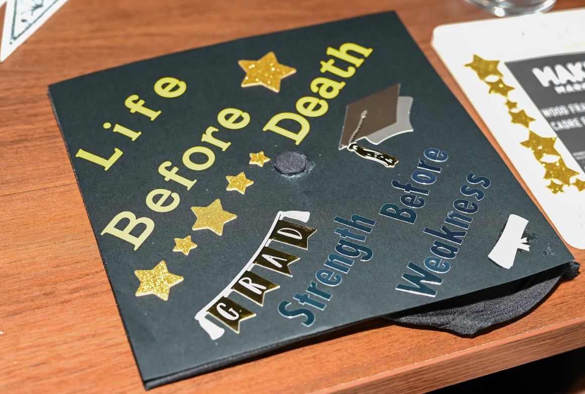 Cody Pfaff, who will graduate next year, decorated his items to pass the time while recognizing others.
