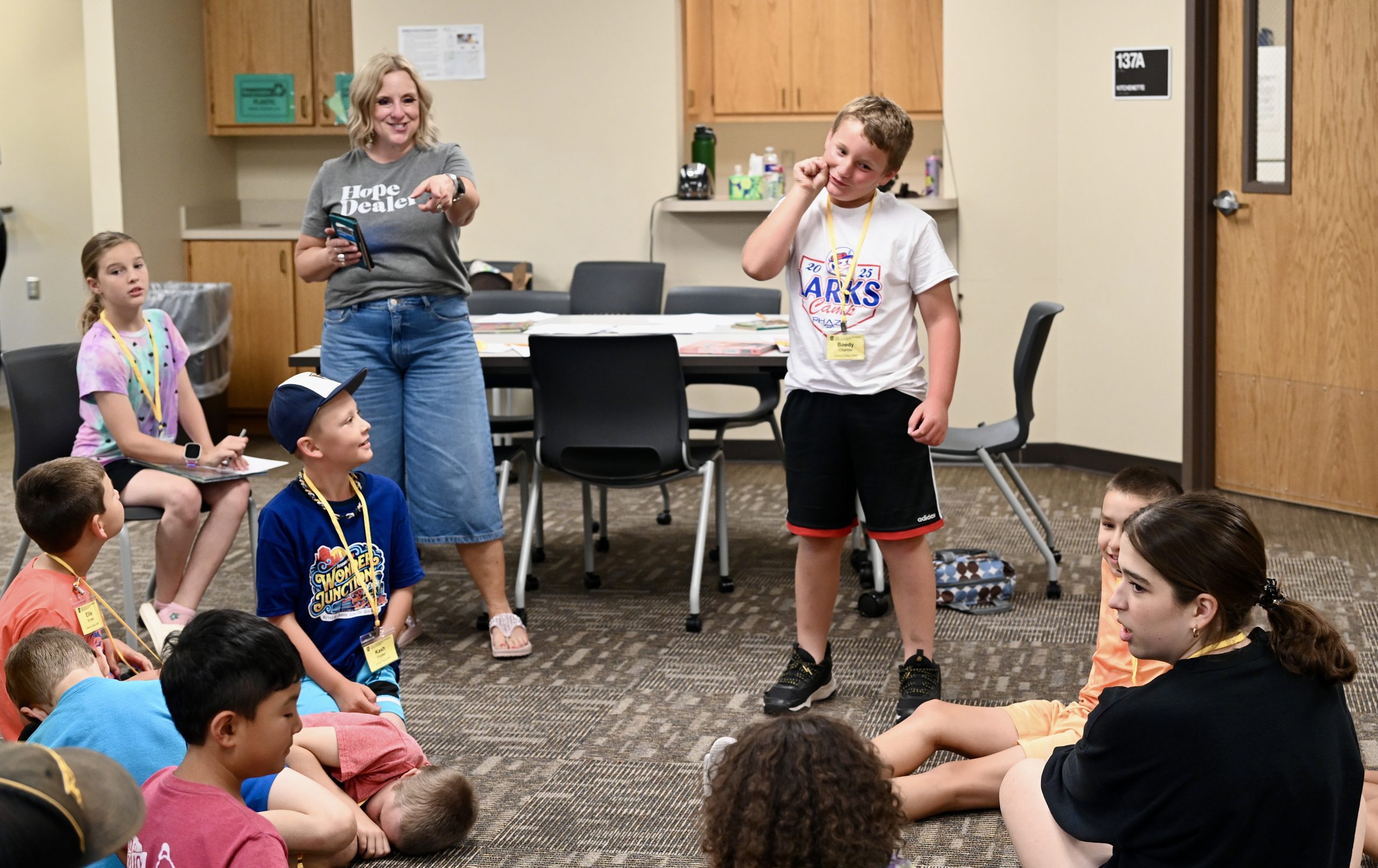 Fort Hays State University’s Science and Mathematics Education Institute hosted a Kids Literacy Camp inside Custer Hall this week. Led by Sarah Miller, an associate professor of Teacher Education, the camp featured a drama-oriented approach to improving youth reading skills by adding techniques like vocal tone and facial expression.