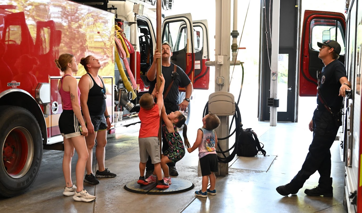 The first Front Porch Friday with the Hays Fire Department of 2025 was hosted at Station No. 1 on 1507 Main St on Friday. Families came to interact with firefighters to ask questions, learn about their work and equipment, look at fire trucks, and tour their station while watching them go down their fire pole through a fun demonstration.
