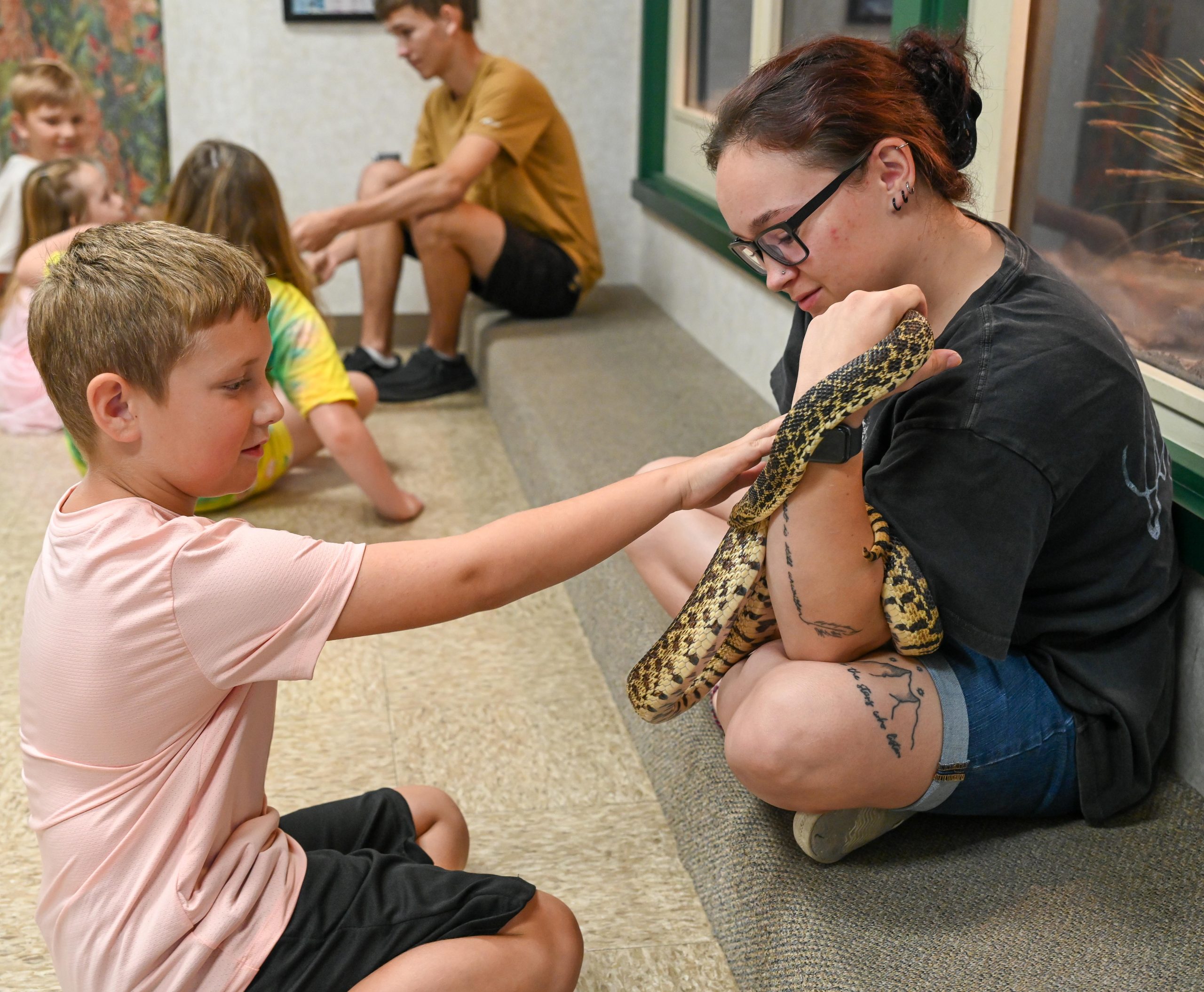 The Sternberg Museum of Natural History is hosting its Animal Encounters exhibition to show off its live animals and display how its staff cares for them. Families gathered in the discovery room on Friday to pet the museum’s snakes and watch them being fed.