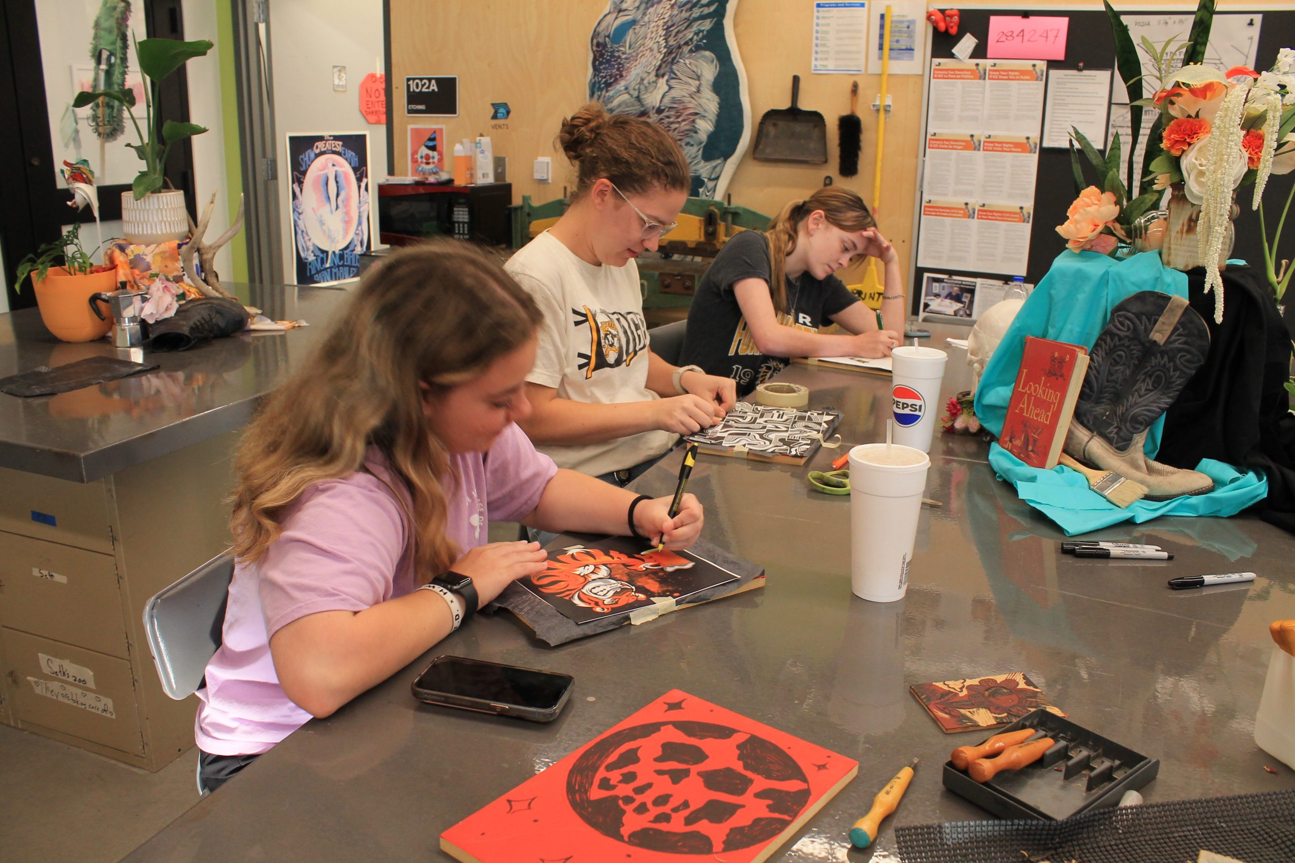 The Creative Arts Society launched the fall semester by showcasing woodblock carving techniques to create prints, which were sold at Oktoberfest this past weekend. With many new freshman members, they demonstrated various print and carving methods, including basic ink prints on newsletters and T-shirts.