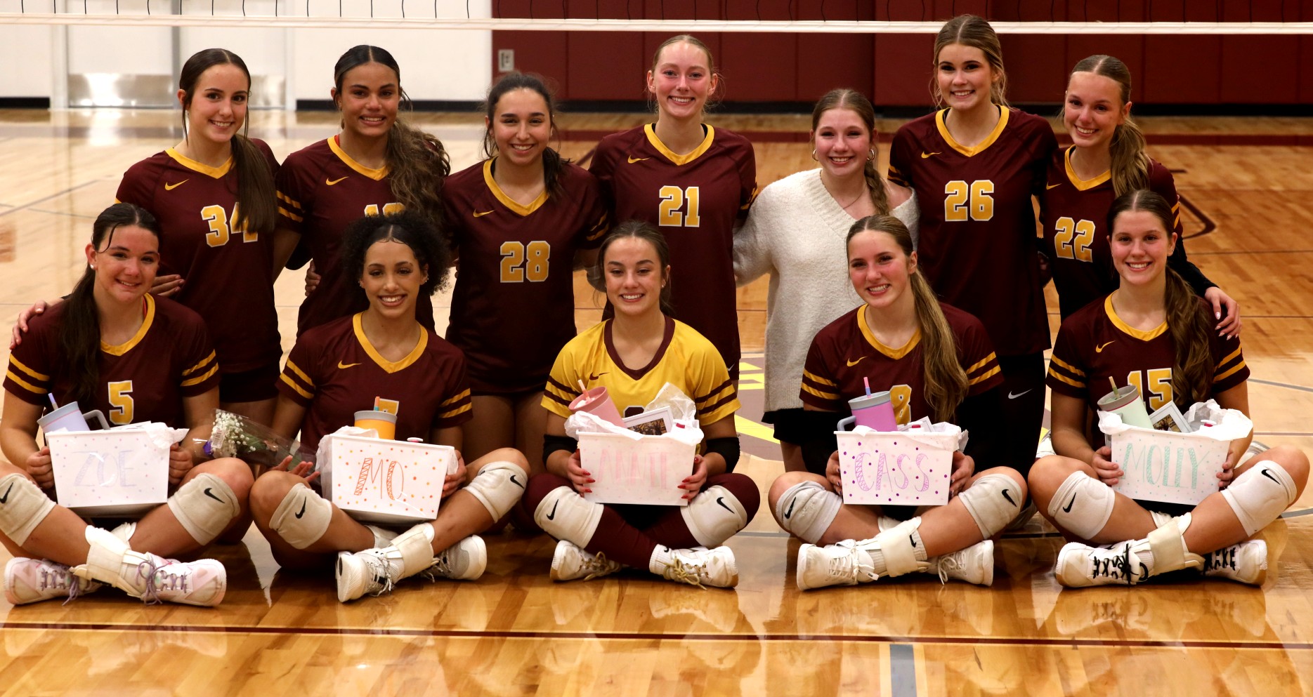 The Hays High volleyball team honored its seniors Tuesday night, celebrating a group that’s been at the core of the program’s growth and success over the past several seasons. The night was full of emotion and energy from the five senior leaders who have defined the team’s identity — Annie Humphrey, Zoe Winter, Moriah Hallam, Cassidy Smith, and Molly Buckles. The Indians made the occasion even sweeter by sweeping both Garden City (2-0) and Phillipsburg (2-0), closing out their home schedule in dominant fashion and improving to 19-9 overall and 4-1 in district play.