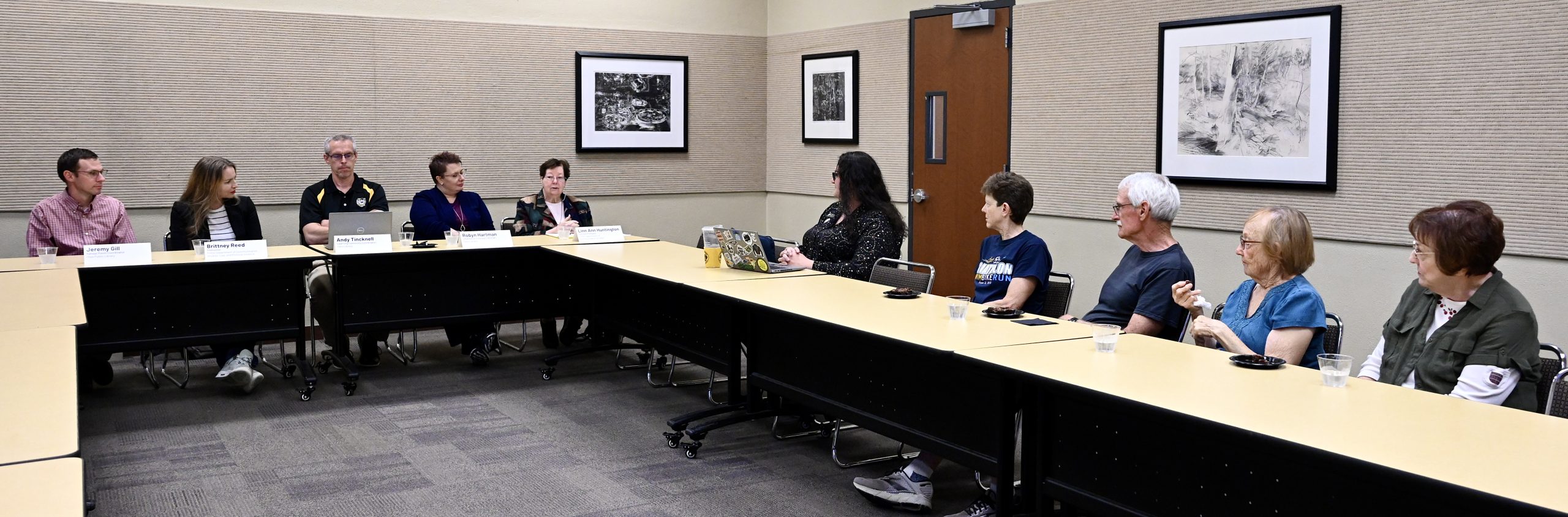 Fort Hays State University’s Tebo Library partnered with the Hays Public Library to host a panel discussion about misinformation and avoiding manipulation by news media for its “How-To-Series” on Thursday. The panel consisted of HPL Kansas Room Coordinator Jeremy Gill, Law and Political Science Professor Brittney Reed, Learning Coordinator Andy Tincknell, Information Literacy Librarian Robyn Hartman and retired Communications Studies Professor Linn Ann Huntington, and was moderated by Engagement Specialist Anna Towns.