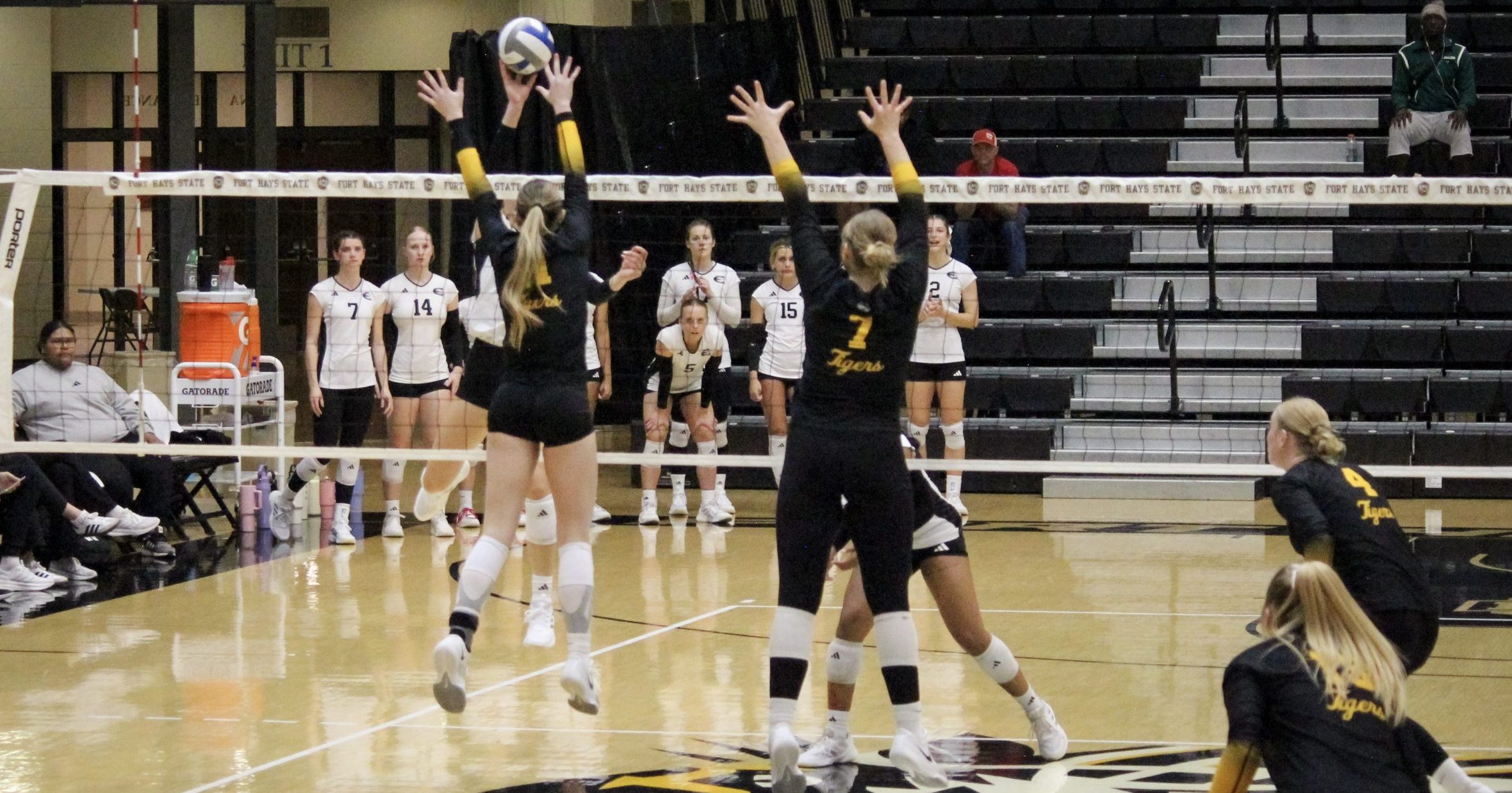 FHSU volleyball welcomed two of the top teams in the MIAA to Gross Memorial Coliseum over the weekend. Hoping to win a match to solidify their place in the MIAA Tournament, the Tigers dropped their two games to Emporia State (3-1) and Washburn (3-0). However, FHSU is still in the hunt with two games left to play in the regular season.