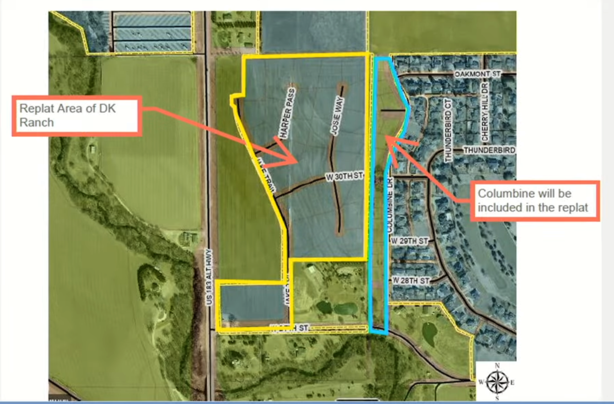 Director of Public Works Jesse Rohr explained that the section of land being developed was platted as DK Ranch in 2013 and also includes part of the Country Club Estates Sixth Addition that was platted even earlier.