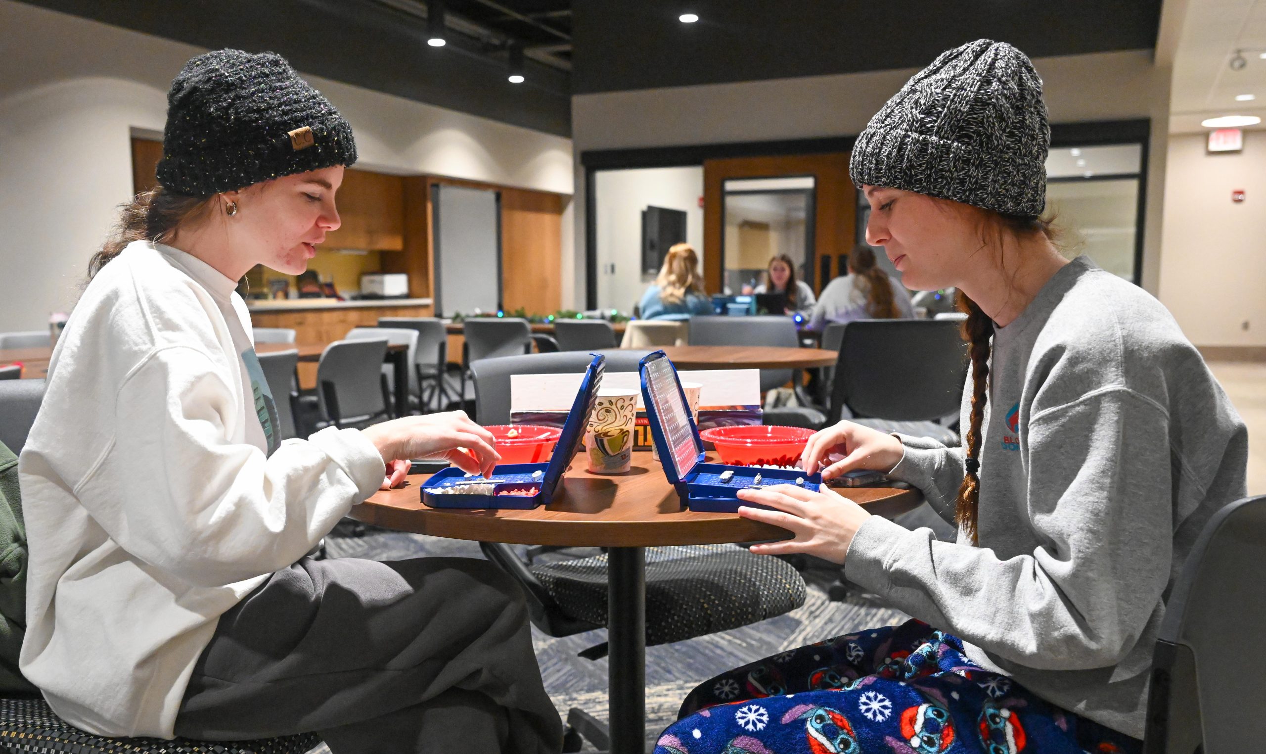 Fort Hays State University’s Office of Student Engagement hosted Finals Study Night on Thursday for students to engage in fun activities, finish school work, and take a break from academics inside the Fishchli-Wills Center for Student Success. Activities were divided into all three floors of the building, with tutoring and study sessions on the first floor, video games and snacks on the second floor, and slime and sensory bottles on the third floor.