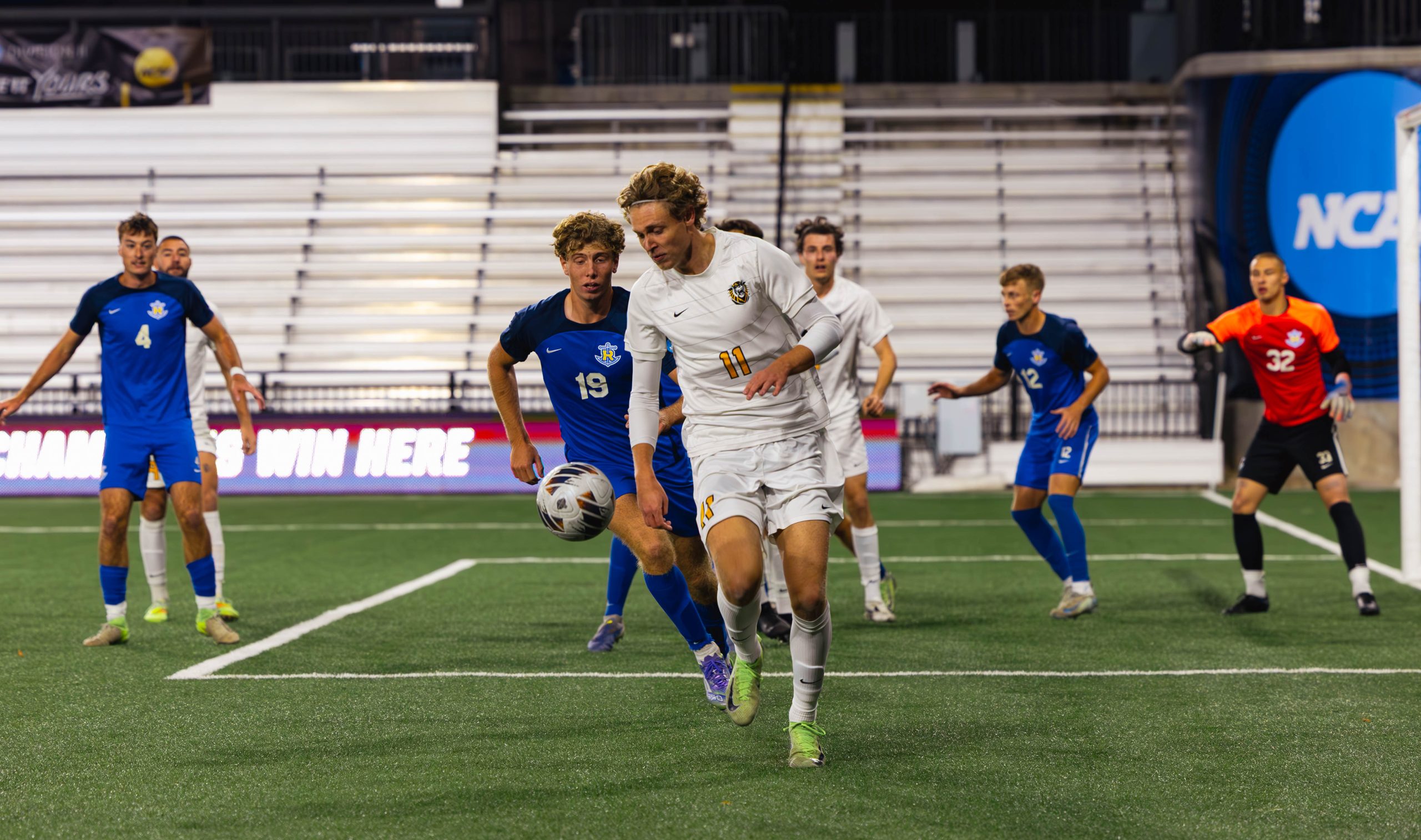 The Tigers had possession for 55% of the game and earned 9 corner kicks, consistently testing the Rollins back line. Forwards Elias Ovelar Semeniuk, Agustin Ayala, and Tadhg Walsh were active throughout the attack, combining for 12 shots as Fort Hays State pressed for the tying goal.