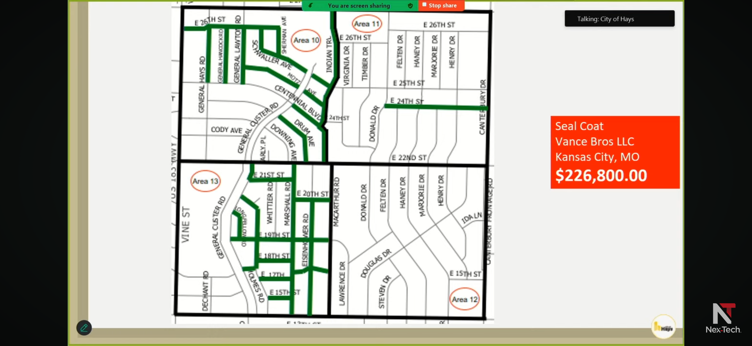 Stripe and Seal of Hays was awarded a $41,860 bid for 2,800 gallons of polypatch to fill large cracks and depressions.