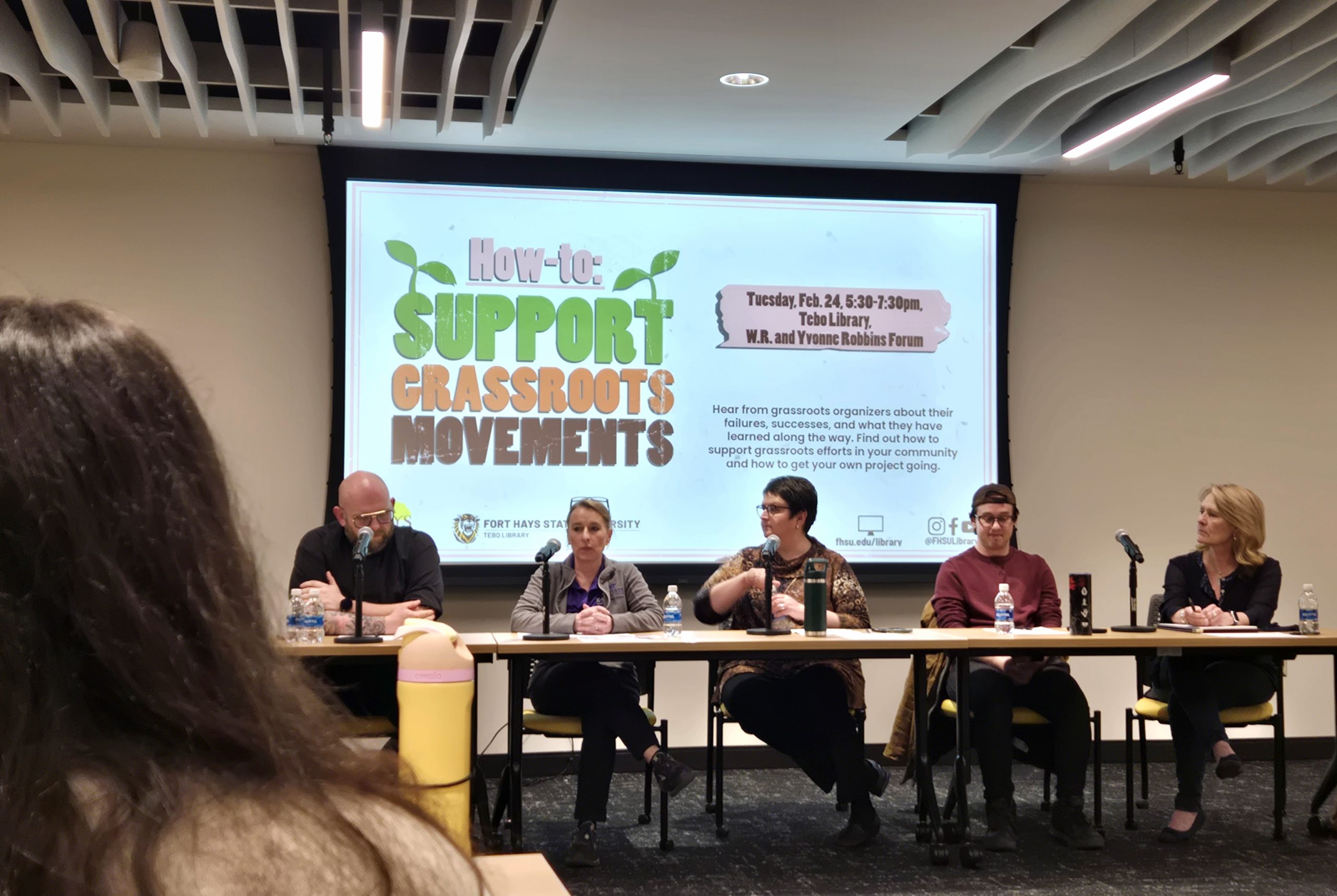A panel of grassroots organizers broke it down last Tuesday night in Tebo Library’s W.R. and Yvonne Robbins Forum. Ben Houchen, director of Feeding Hays, Monique Koerner, with K-State Extension, Dana Stanton with Northwest Economic Innovation Center, Kiernan McCarty, Hays Arts Council executive assistant, and Brenda Meder, director of School Programming, spoke to attendees.