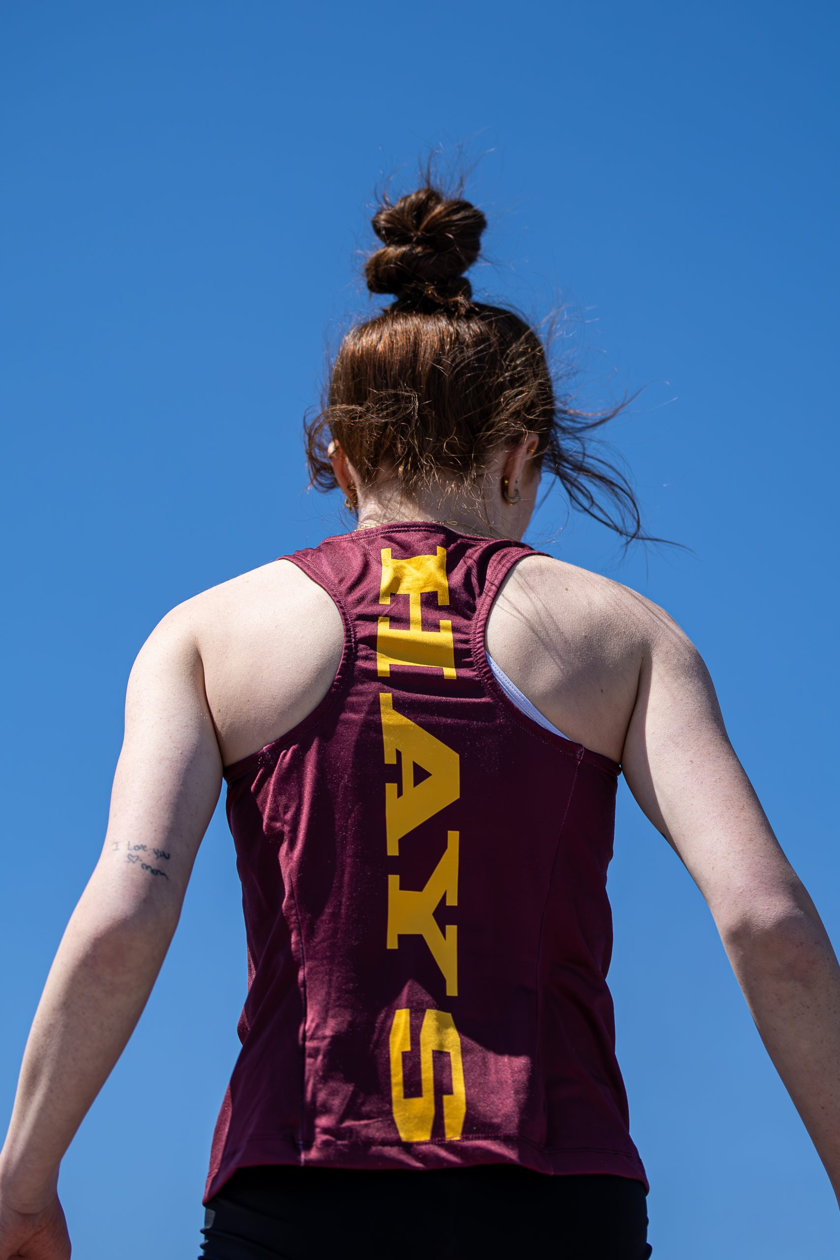 Caleah Sanders clears the bar during the high jump, recording a height of 5-0.