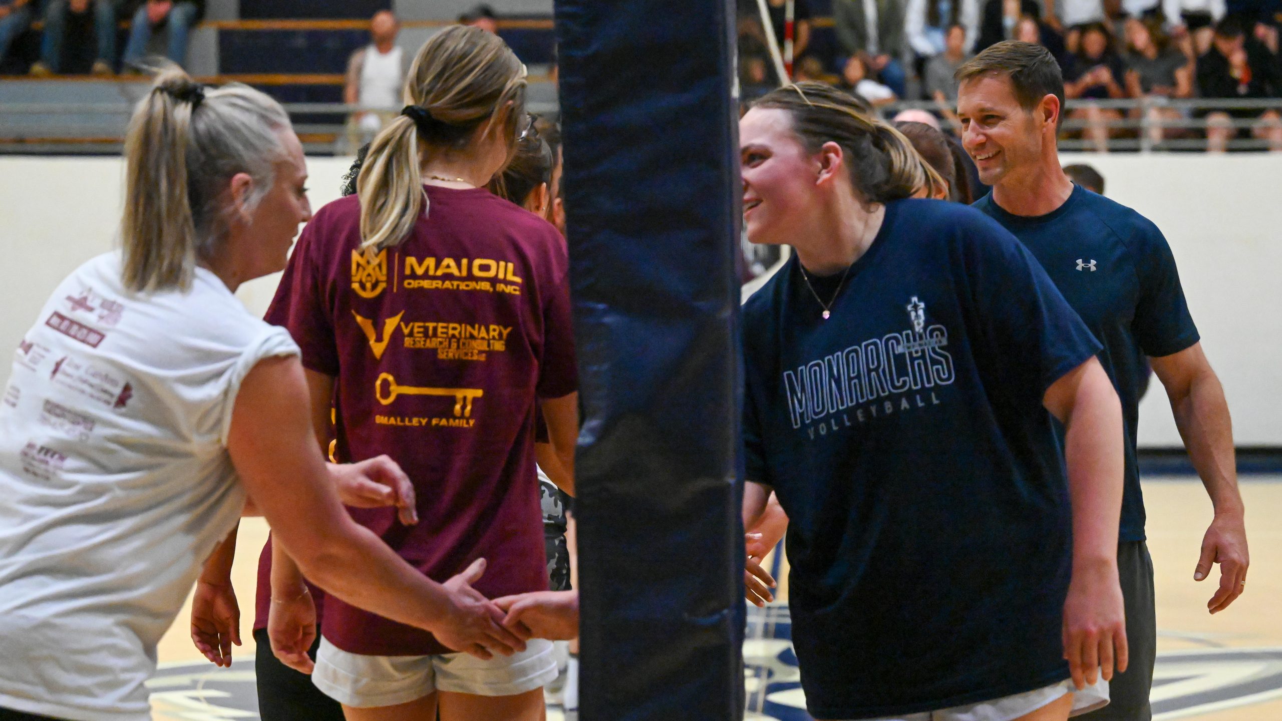 Area News News PHOTOS: HHS, TMP battle on volleyball court tmn-admin April 10, 2026 By RORY MOORE Tiger Media Network On Wednesday, staff members of Hays High School and Thomas More Prep-Marian hosted a friendly volleyball competition at Al Billinger Fieldhouse. Monarch staff taking the trophy. The Monarchs swept the Indians in all three sets, winning 25-20, 25-19, and 25-23.Haley Jackson serving for Hays High. Playing the first set inside Al Billinger Fieldhouse.Alex White serving with assistance from Erin Ruder and Charlotte Cooper. Moises Delima diving toward a Monarch strike. Brandon Hardwick and Erin Ruder attempting a block. White attempting an Indian attack. Hardwick playing defense midair. Thomas More Prep-Marian staff get ready to play Hays High staff in a charity Volleyball game to raise funds for DSNWK.Cheering from the Indians sideline.Jackson attempting an attack. TMP Principal Chad Meitner getting pied in the face. Jackson leaping to block a Monarch shot. Konnor Splichal attempting a kill against the Indians. ShareClick to share on Facebook (Opens in new window)Click to share on Twitter (Opens in new window)Click to share on Tumblr (Opens in new window)Click to share on Reddit (Opens in new window)Like this:Like Loading... Related